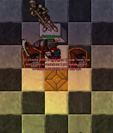 | A loteria VIP funciona assim: A cada 2 horas o server sorteia um player que estiver online para receber 1 Premium Points no nosso site para poder gastar na Shop. Então você só precisa estar online e ter sorte para ganhar! Além disso, quanto mais MCs você tiver aberto, maior sua chance de ganhar!. |